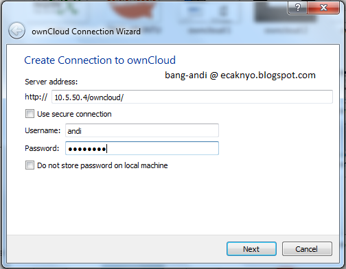 3. Instal Owncloud Desktop Client yang tadi di download, tahap instalasi sama saja seperti aplikasi pada umumnya., seperti Google Drive.